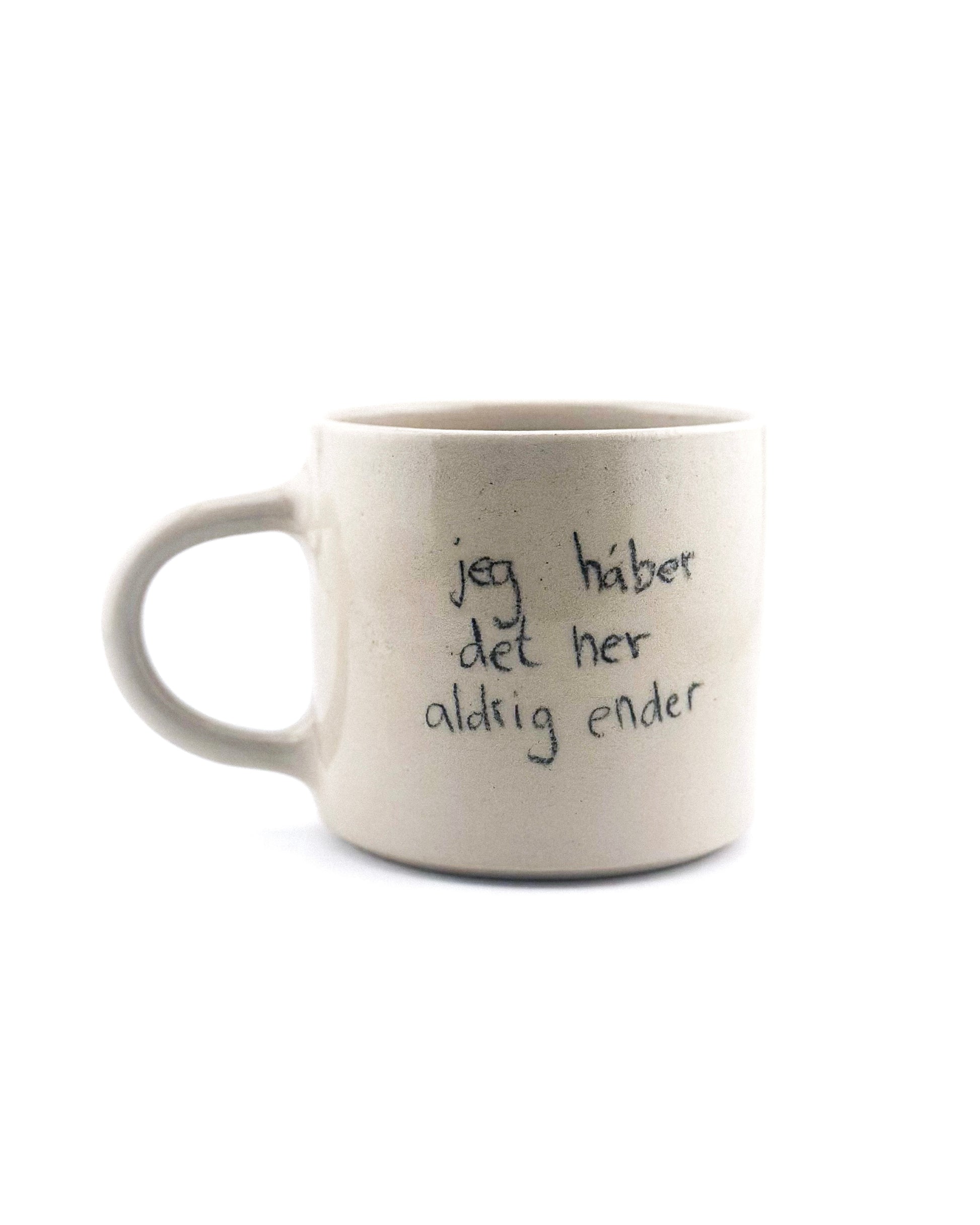 HÅNDLAVET KERAMISK KOP MED HANK. DREJET I STENTØJSLER.